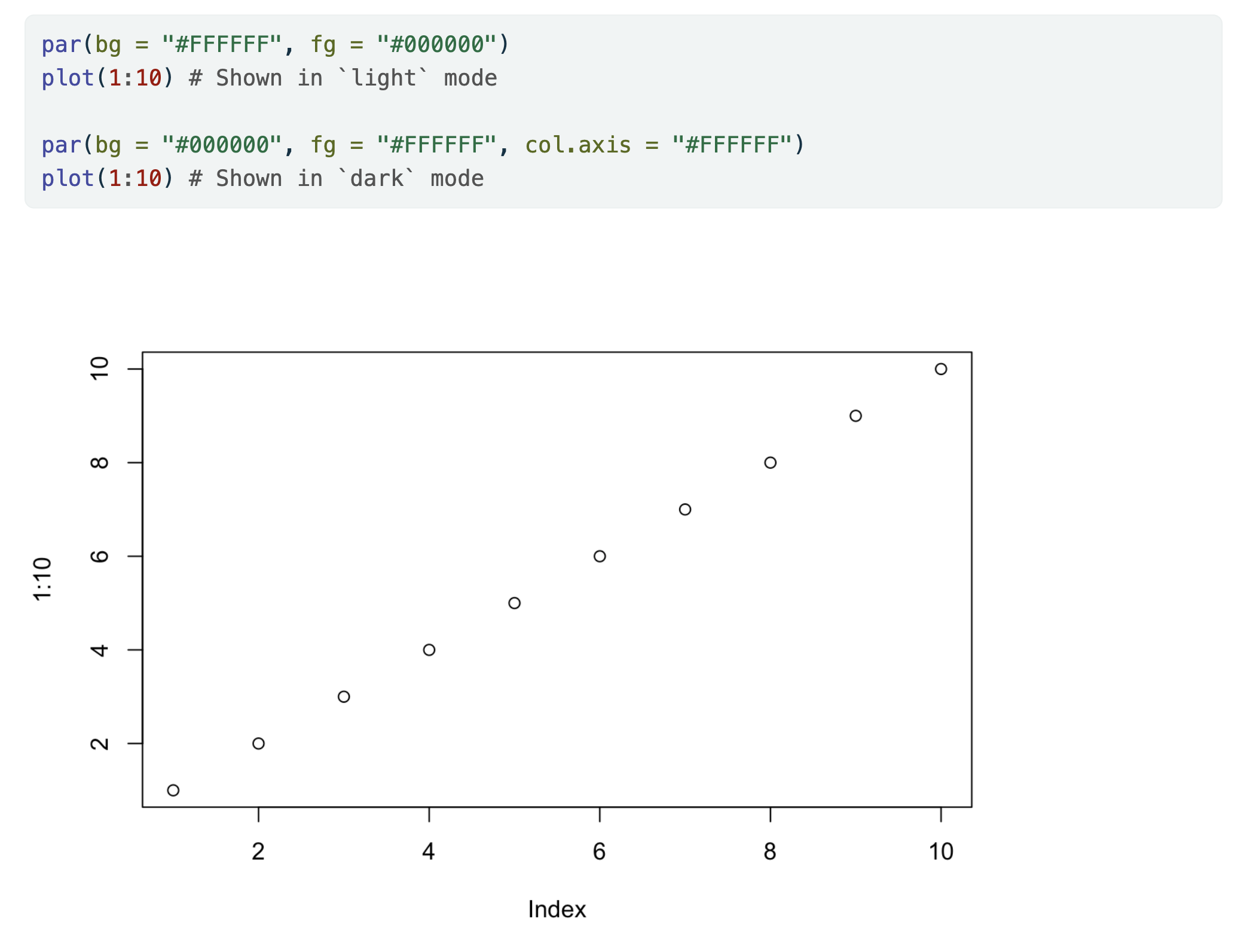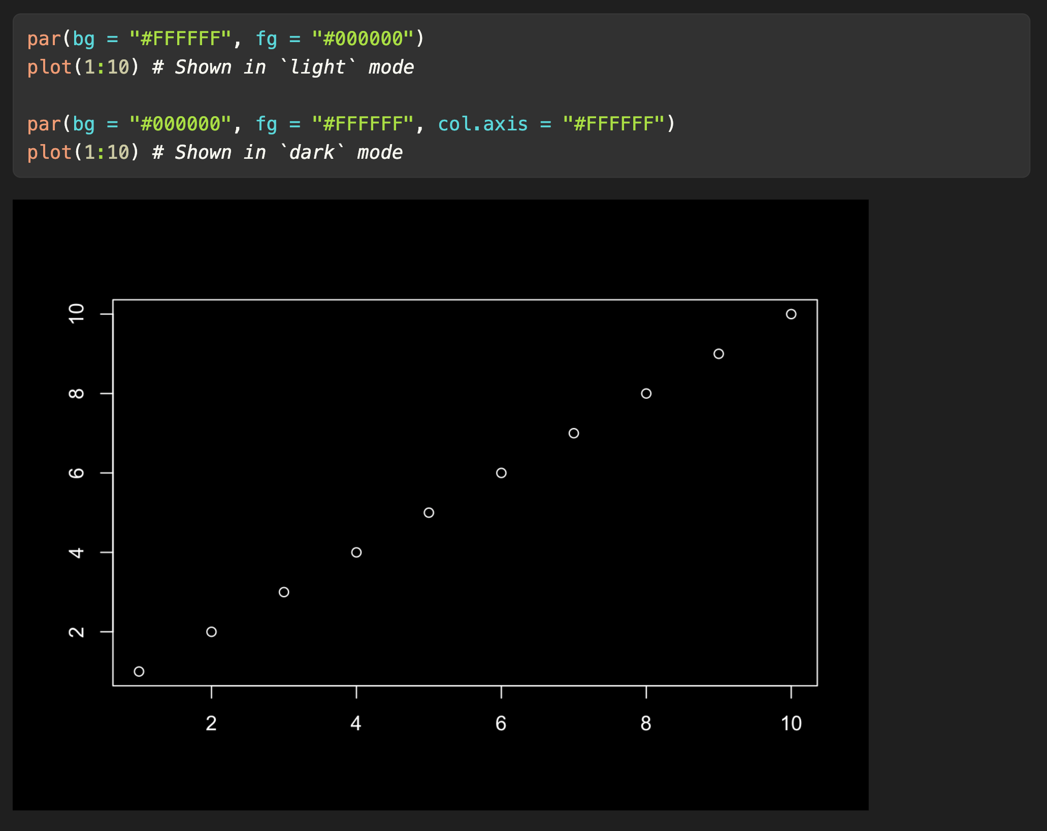 par(bg = "#000000", fg = "#FFFFFF", col.axis = "#FFFFFF")
